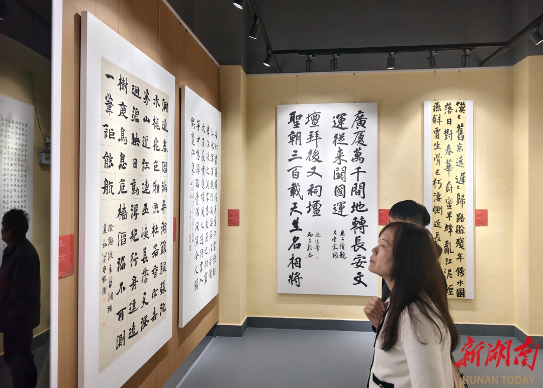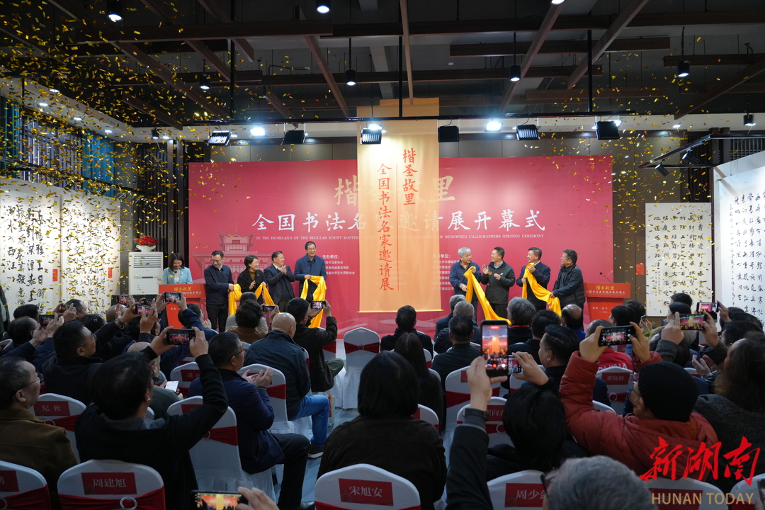 湖南日报·新湖南客户端3月20日讯(记者 谢璐 摄影 范远志 黄旭里 通讯员 唐沛)今天,楷圣故里——全国书法名家邀请展系列活动在长沙市望城区欧阳询书画院启幕,近百名书法名家的精品力作在此展出,推动书法艺术普及与发展。