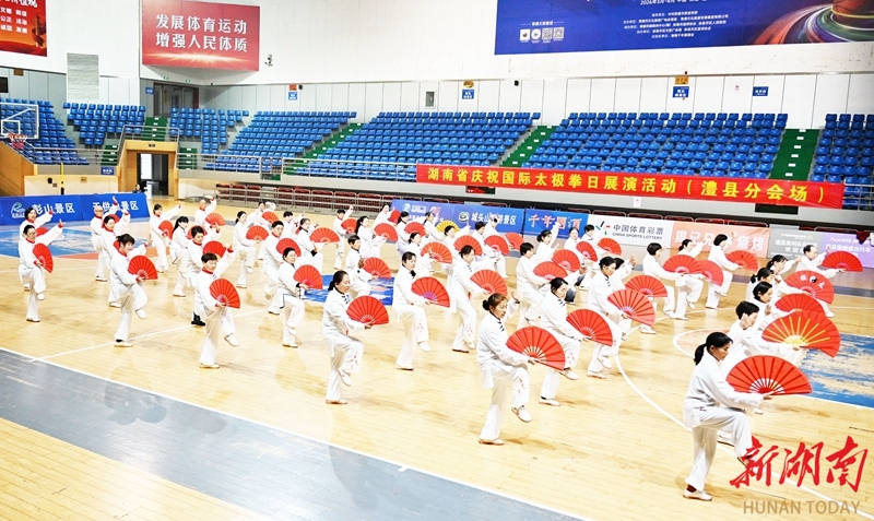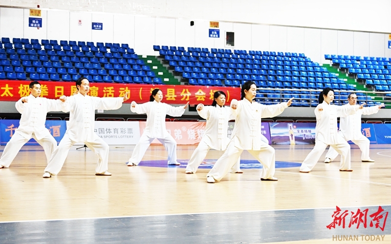 3月20日,澧县文旅广体局联合县太极拳运动协会组织群众团体开展太极拳展演活动,迎接首个国际太极拳日的到来。柏依朴 郭龚平 摄影报道(湖南图片库)