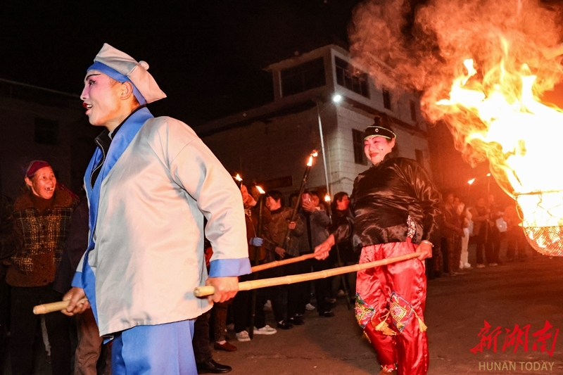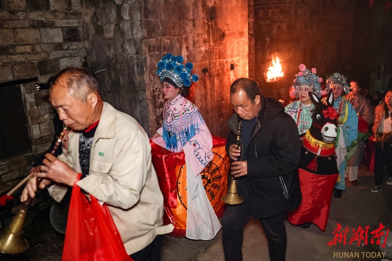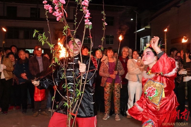 3月19日晚,临武县水东镇斗水坪村举行“夜故事”民俗活动,全村200余人参加并组成32个“故事”进行巡游演出,发扬和传承当地优秀传统文化。陈卫平 摄(湖南图片库)