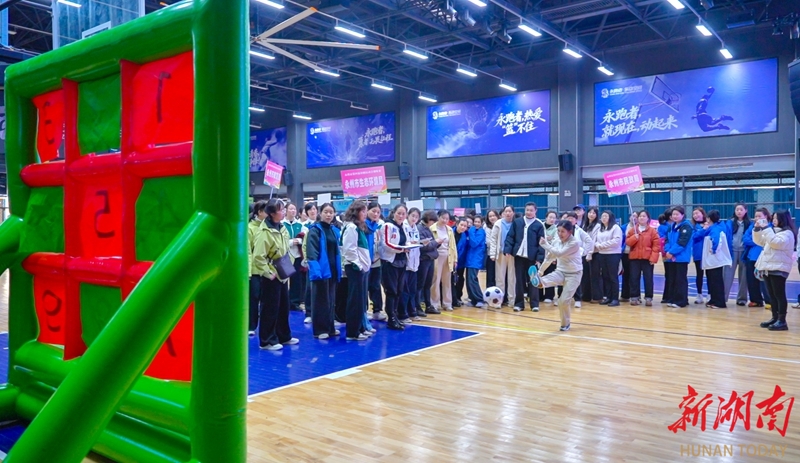 3月20日,永州市第四届“永冲锋建新功・巾帼奋进新征程”巾帼运动会趣味赛在冷水滩区工人文化宫举行。本次比赛以“趣味竞技+文化传承”为特色,吸引了全市500余名女性干部职工参与,既丰富了大家的精神文化生活,又增强了团队凝聚力和向心力。图为女职工在进行点球大战比赛。文佳星 摄(湖南图片库)
