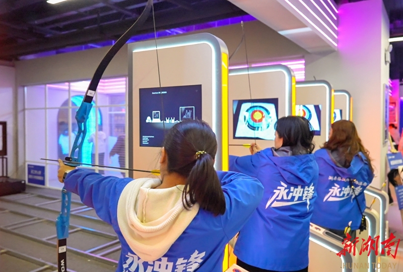 3月20日,永州市第四届“永冲锋建新功・巾帼奋进新征程”巾帼运动会趣味赛在冷水滩区工人文化宫举行。本次比赛以“趣味竞技+文化传承”为特色,吸引了全市500余名女性干部职工参与,既丰富了大家的精神文化生活,又增强了团队凝聚力和向心力。图为女职工在进行趣味射箭比赛。文佳星 摄(湖南图片库)