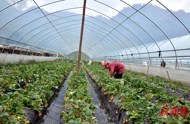 3月20日,吉首市石家冲街道寨阳村,农民在大棚管护草莓。春分节气,我省各地农民抢抓农时,积极投入春耕春管等各项农事生产中,田间地头一派忙碌景象。姚方 杨燕萍 摄影报道(湖南图片库)