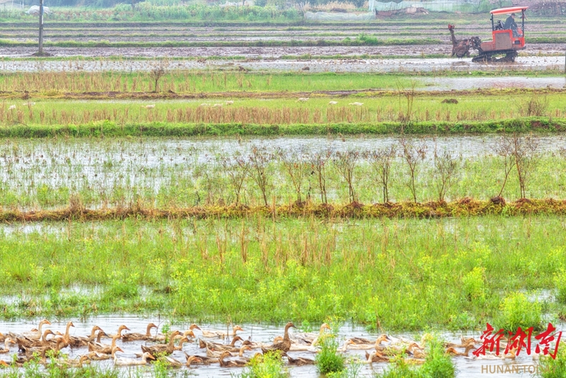 3月20日,祁东县金桥镇,村民驾驶农机在翻耕稻田。春分节气,我省各地农民抢抓农时,积极投入春耕春管等各项农事生产中,田间地头一派忙碌景象。曹正平 周玲 摄影报道(湖南图片库)