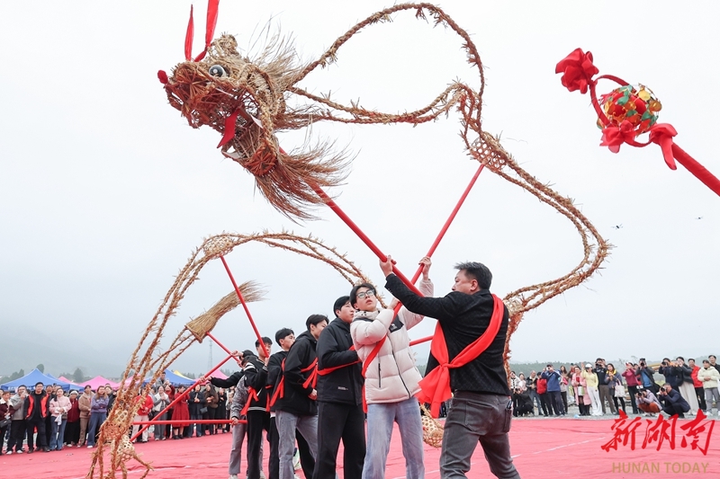 3月20日,临武县花塘乡石门村,村民在舞草龙。春分节气,恰逢二月二龙抬头,各地开展丰富多彩的活动,欢庆“双喜临门”。陈卫平 摄(湖南图片库)