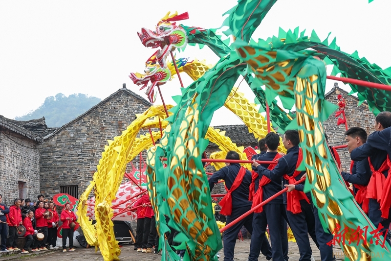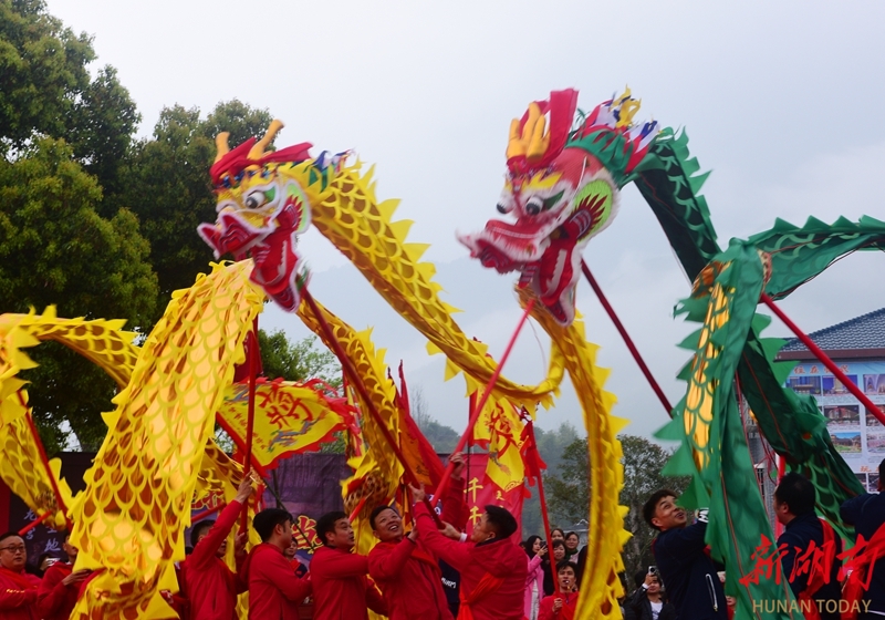 3月20日,临武县花塘乡石门村,村民在舞文龙。春分节气,恰逢二月二龙抬头,各地开展丰富多彩的活动,欢庆“双喜临门”。陈卫平 摄(湖南图片库)