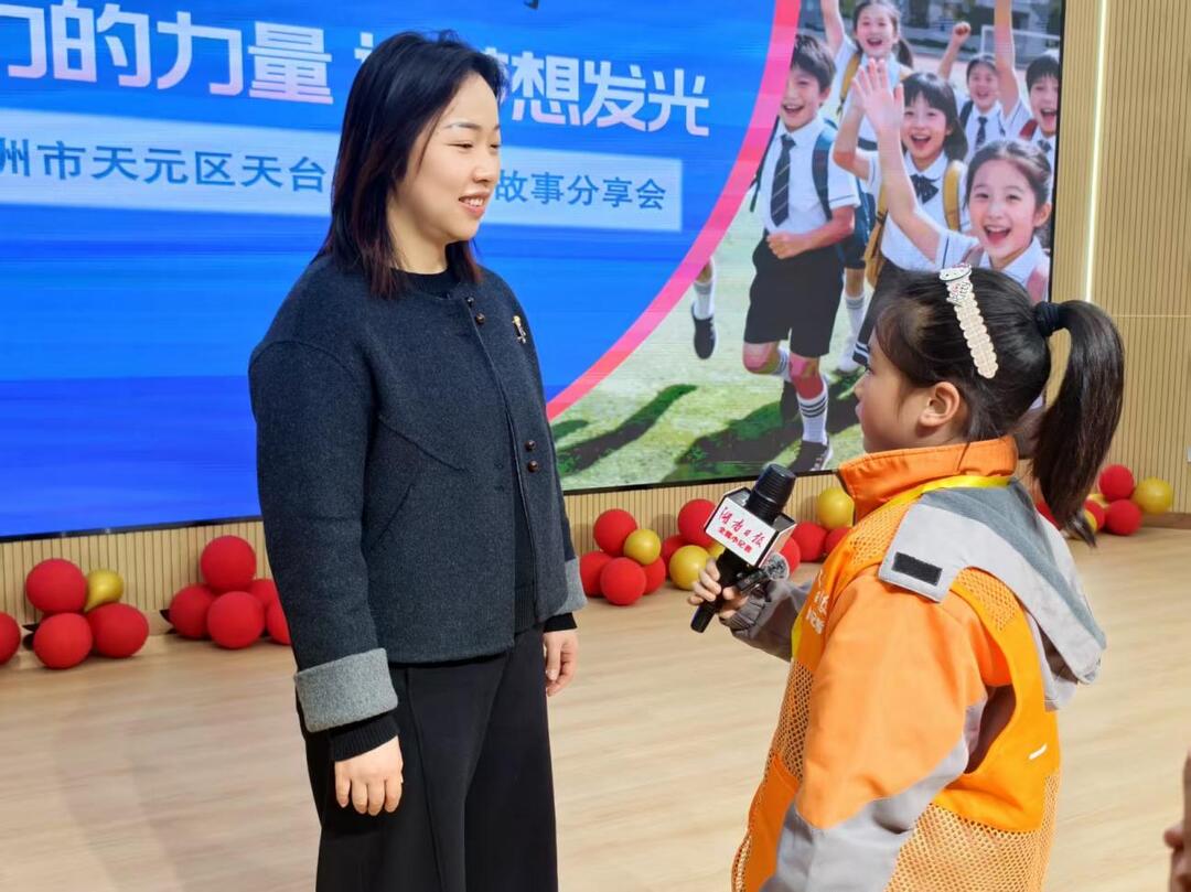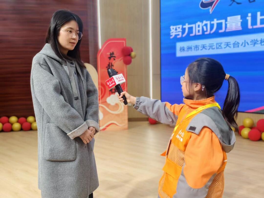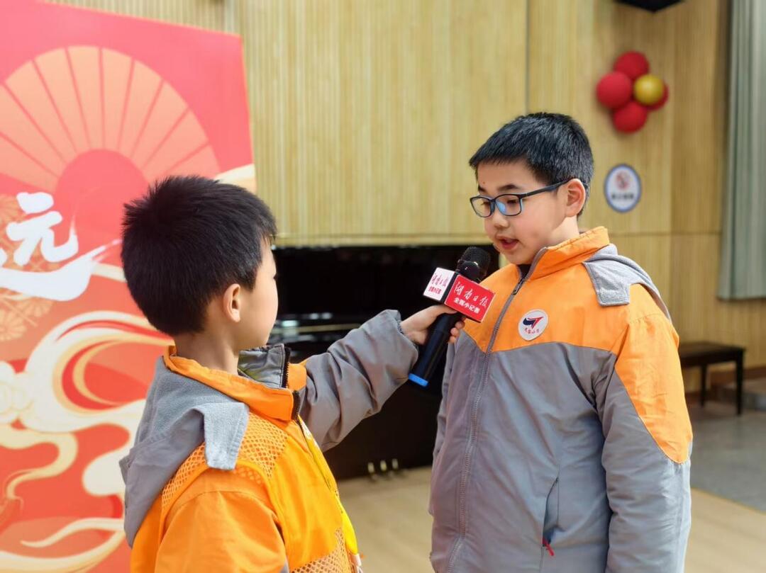 分享会结束后,湖南日报全媒小记者们对现场嘉宾和同学进行了采访。张婧勉励同学们将“不轻易放弃”化为习惯,遇到困难时记得“再试一次”;于展惠表示,榜样进校园的意义在于带给同学们迎难而上的勇气;唐婷介绍了学校通过“美德少年”评选、社团课程及科技艺术节等载体,将价值观教育融入日常。参会同学也纷纷表示,要从身边小事做起,在坚持中成长。