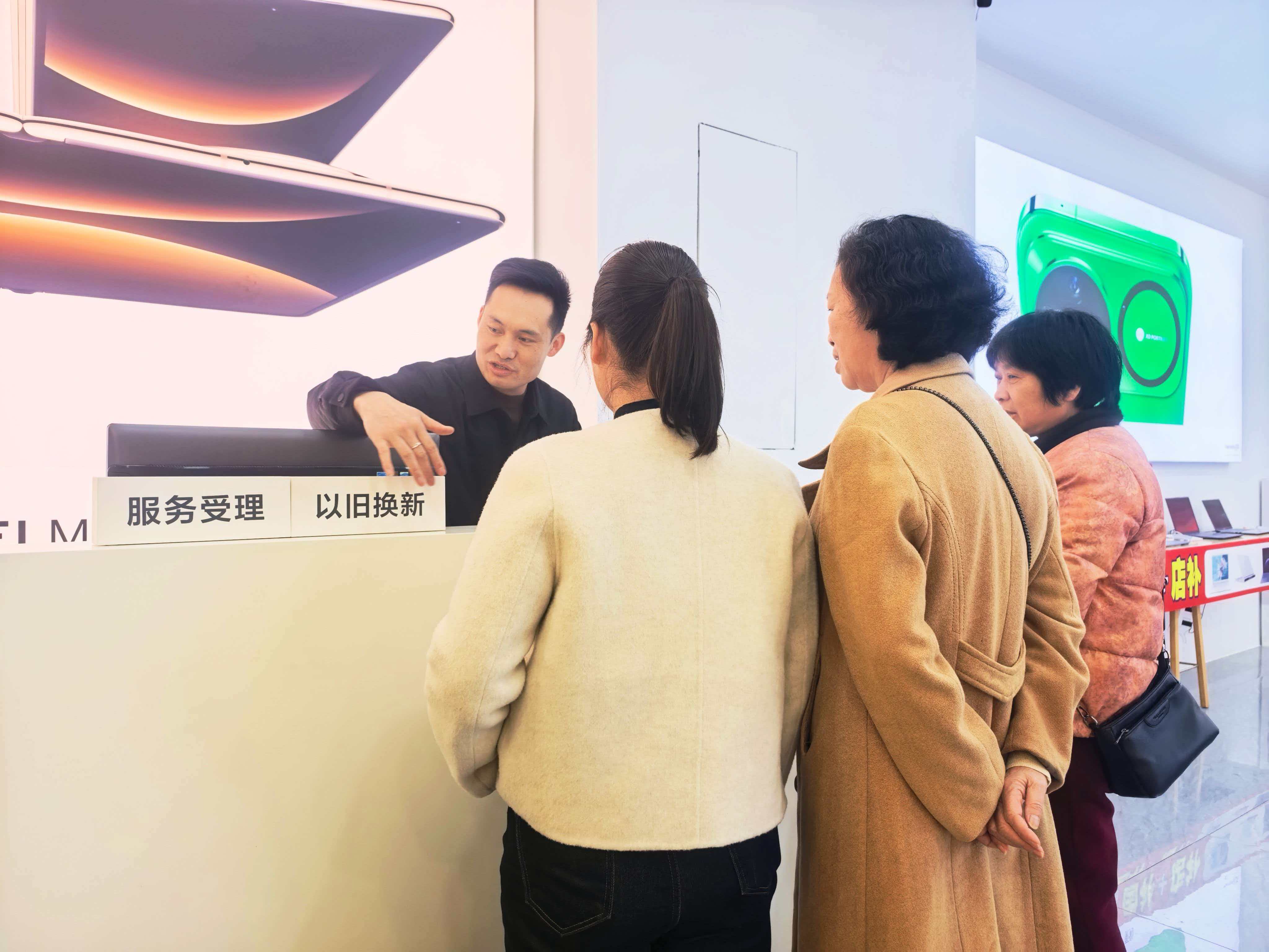 连日来,笔者在桂阳县数码专营店、家电卖场看到,以旧换新的宣传海报摆放醒目,前来咨询、办理置换业务的市民络绎不绝。在京东手机数码店,不少年轻市民前来咨询手机、平板的置换政策;在拓普电器,一级能效家电以旧换新成为市民选购热点。