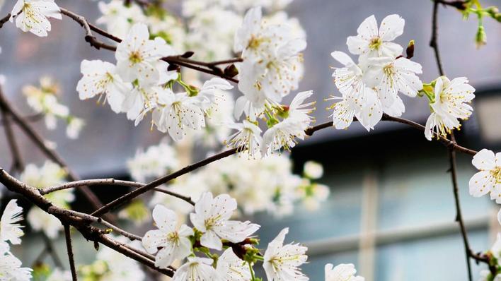 常德市城区高山街盛放的樱花。 陈子尧 伍银 冯顺前 摄