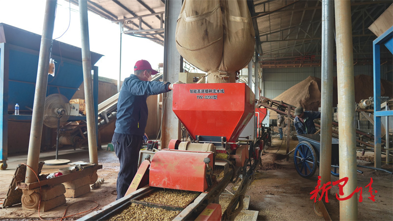 走进筻口镇丰瑞农机专业合作社的现代化旱地育秧工厂,机械轰鸣、春意涌动,一条全新升级的育秧流水线正开足马力作业。消毒、摆盘、铺土、洒水、播种、覆土……整套工序在机械精准操作下仅需十几秒便能一气呵成。一个个规格均匀的育秧盘顺着传送带鱼贯而出,随即被集中送入催芽密室,在恒温恒湿环境中静待新芽破土。