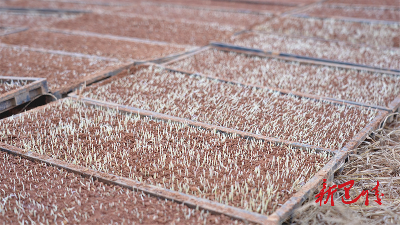 走进催芽室,一排排秧苗盘整齐码放,合作社创新利用空调与循环风扇协同运作,确保上下层温度均匀稳定,为种子萌发创造最佳“温床”。今年,该合作社还积极探索超声波催芽等新技术,期望以更前沿的科技手段,进一步提高发芽率与秧苗品质。