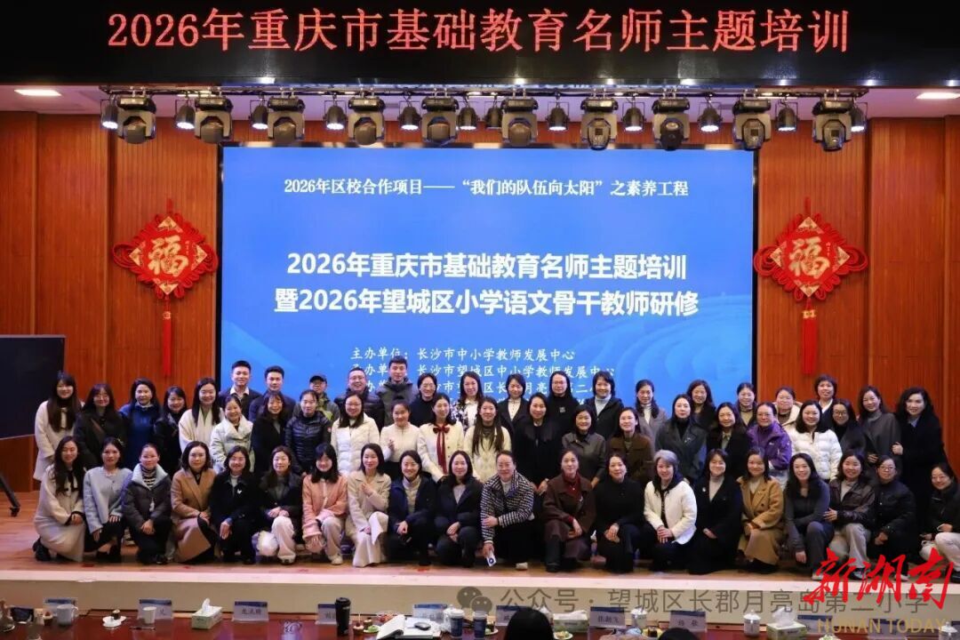 新湖南客户端3月21日讯(通讯员 杨迪 李诗卉 何馨怡)近日,2026年重庆市基础教育名师主题培训暨2026年望城区小学语文骨干教师研修活动在长郡月亮岛第二小学西校区举行。长沙教育学院师训处小学语文项目负责人臧迎春、小学音乐项目负责人张朝飞,望城区中小学教师发展中心小学语文教研员符启霞,望城区小语名师工作室首席杨歌及工作室核心名师,长郡月亮岛第二小学党总支书记蔡拥政、校长刘德明,以及重庆小学语文名师团队、望城区各学校骨干教师参加。