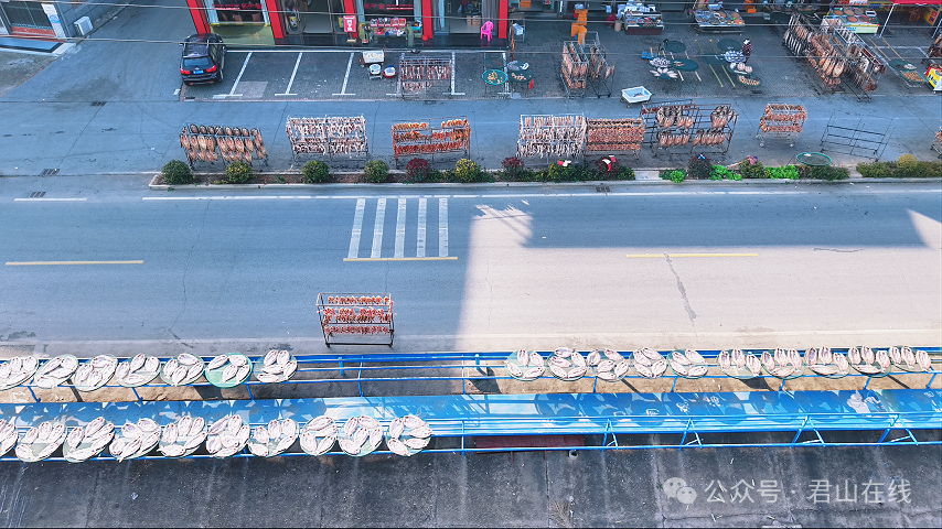 △六门闸生态渔村晒鱼长廊。同样的故事也在六门闸上演。渔民“洗脚上岸”,转身做起“风干鱼”产业,一条小鱼干“晒”出亿元大产业,拿下国家地理标志认证。1.6公里的“晒鱼长廊”整齐码放着风干鱼,曾经鱼腥味扑鼻的码头,现成了全国各地游客打卡的网红地,城乡之间的距离在洞庭湖畔悄然拉近。