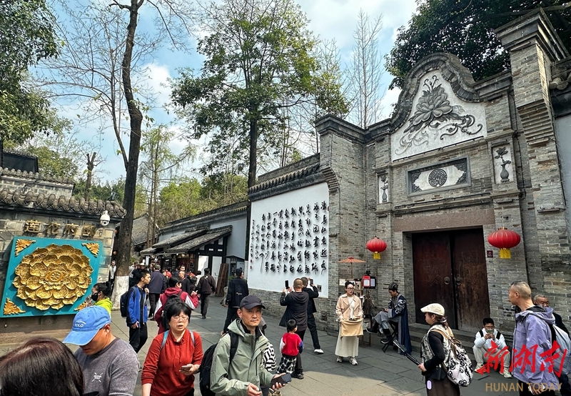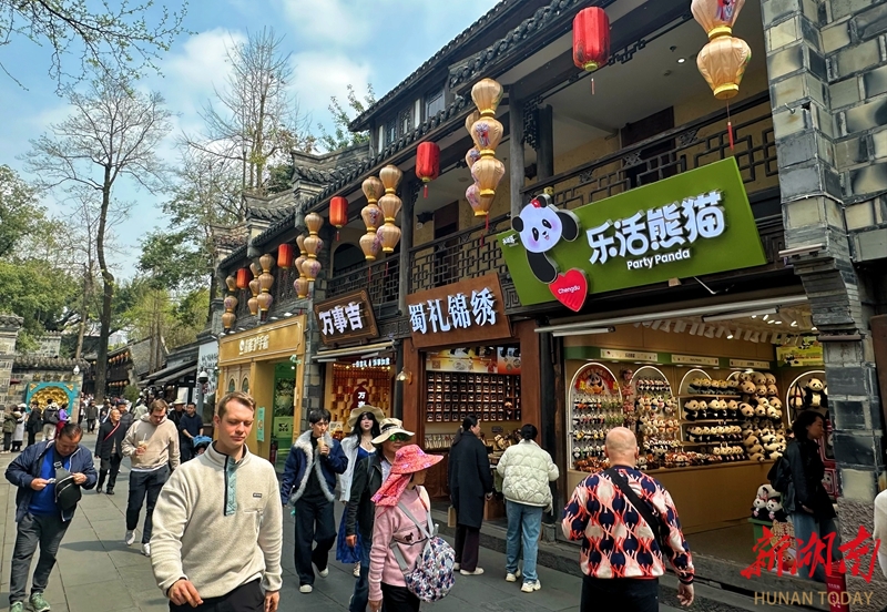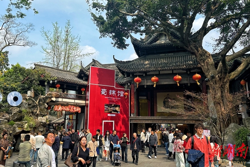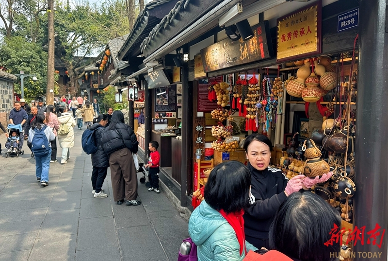 3月21日,游客在四川省成都市锦里古街参观购物。锦里建筑以清末民初四川民居风格为基础,融合三国文化和四川传统民俗文化内涵。主要景点有古戏台、九品小吃街、诸葛井、西蜀第一牌坊、民俗记忆墙、宋代石刻长廊等,是成都文化名片之一。湖南日报全媒体记者 徐行 摄