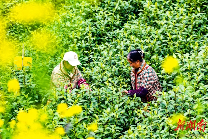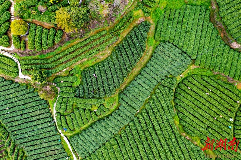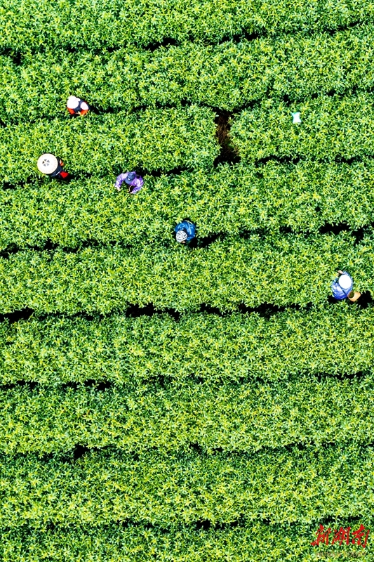 3月21日,吉首市马颈坳镇隘口村茶园,茶农正忙着采摘春茶。时下,当地茶叶产区进入春茶采摘期,茶农抢抓时节采收新茶,及时供应市场。刘振军 摄(湖南图片库)