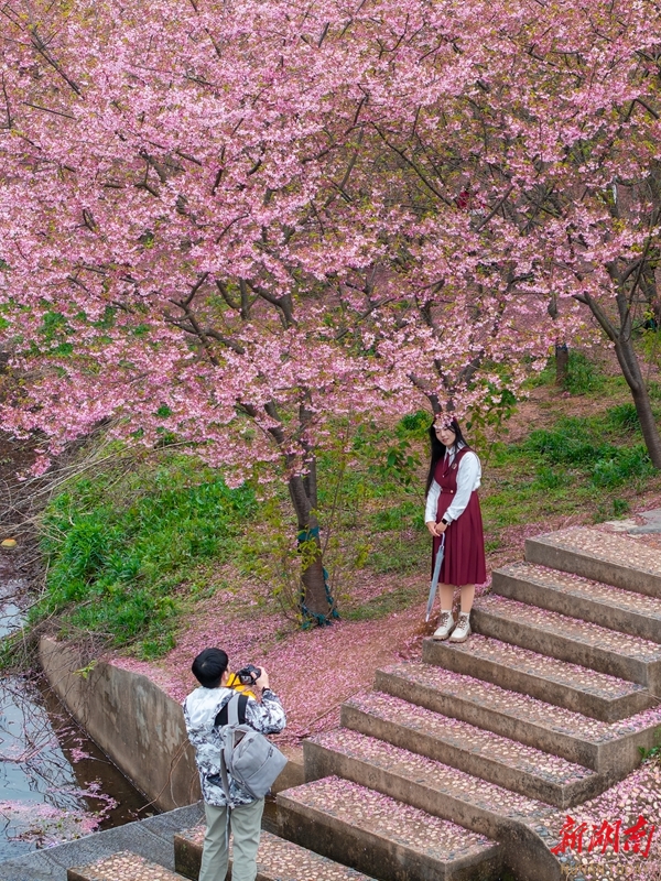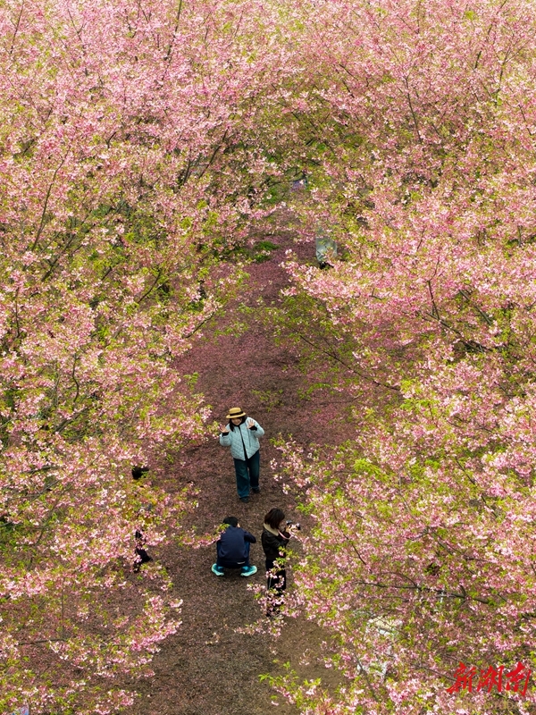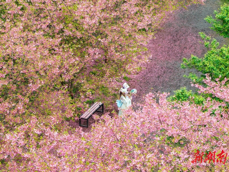 3月21日,游客在湘潭市岳塘区昭山镇七星村樱花园踏青赏花。近期,该园5000余株樱花竞相绽放,粉白与嫣红交织成片,勾勒出浪漫的春日画卷。 湖南日报全媒体记者 童臻熙 摄