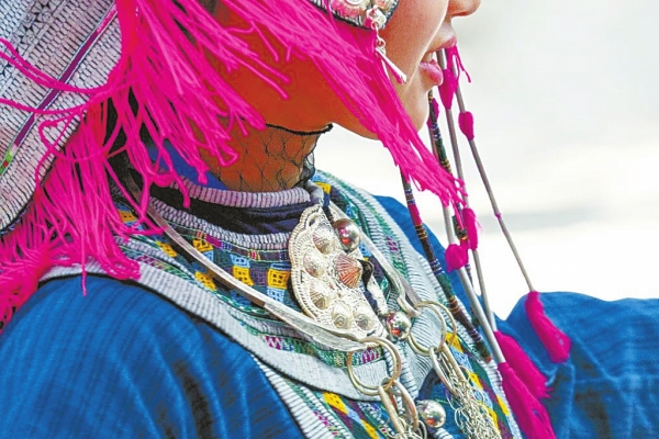 后来,我走的地方多了,看过各族霓裳,不由赞叹那些依天时、地貌、物产和人文而生的服装,与自然和文化保持的和谐关系。中国五十六个民族都有自己独特的传统服装佩饰。高原民族皮袍毛毡配珠宝银饰,刚柔相济;雨林民族蝉衫柔裙配鸟羽兽牙,野趣横生。不少民族支系繁多,每个支系甚至每个村寨的服装佩饰自成一体。一些民族,仅服装款式就多达上百种,皆做工精细,佩饰新奇。民间出人意料的创意,让专业艺术家和设计师惊喜连连;而衣装佩饰上深厚的文化意蕴,更让人敬佩不已。