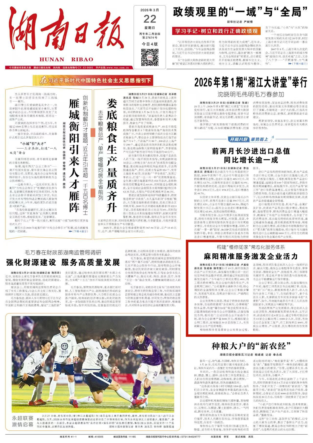 载于《湖南日报》3月22日头版