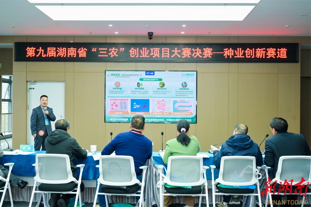 (第九届湖南省“三农”创业项目大赛比赛现场。)
