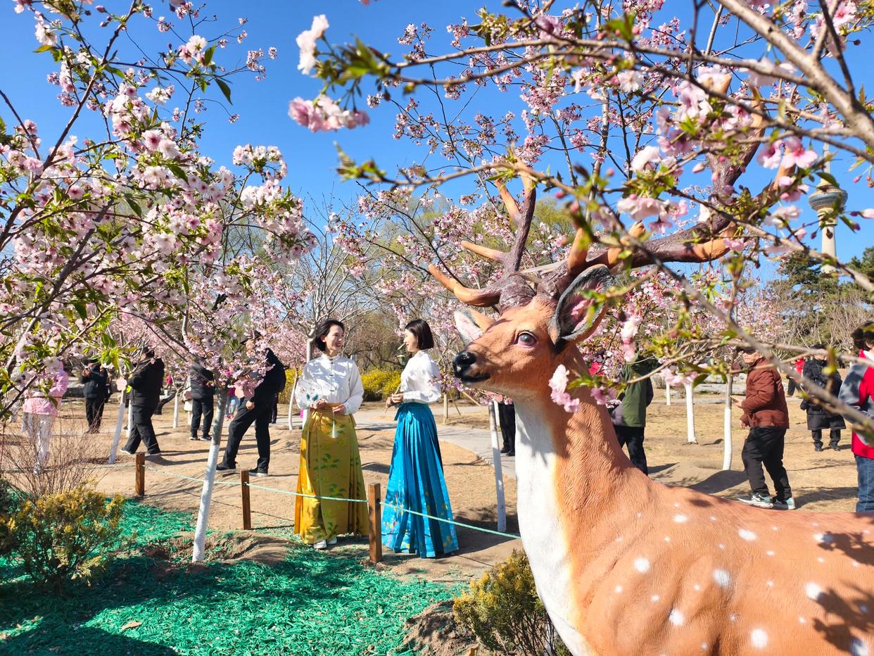 “我们其实无法改变樱花盛开的时长。人工培育主要作用于花苞萌发之前,一旦花苞绽放,开花速度便会加快,此时人为干预已很难再影响开花进程了。”刘东骏介绍,公园能够让花期持续的秘诀绝非延长单一品种花期那么简单,而是靠品种错峰搭配实现的。园艺队会根据樱花品种的花期给它们“排好班”,等待花儿次第开放。