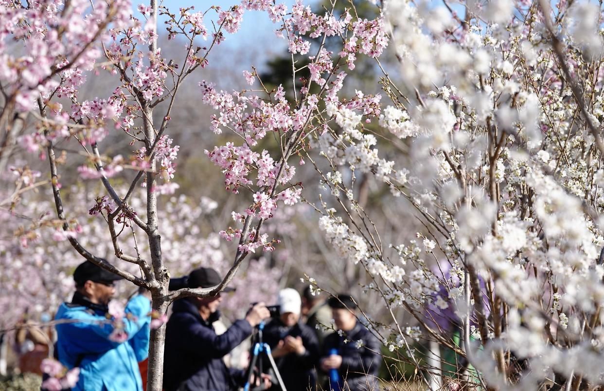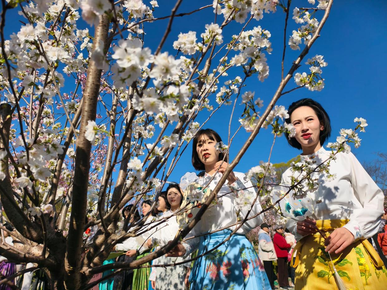 比如春节期间在小樱驿站里,团队精心筛选早中晚不同花期的品种,由花期最早的“河津”“华中”领衔,然后是花期稍晚几天的“旭山”“梅雪”接力,最后由“大渔”“阳光”“楚锦”等品种收尾,就这样,不同品种依次绽放、无缝衔接,硬生生把短短一周的花期拉长至近一个月,从小年到元宵节,天天有花看。而在刚开幕的樱花文化活动中,之所以让“香妃”首先亮相,也是因为“香妃”的开花时间较早。