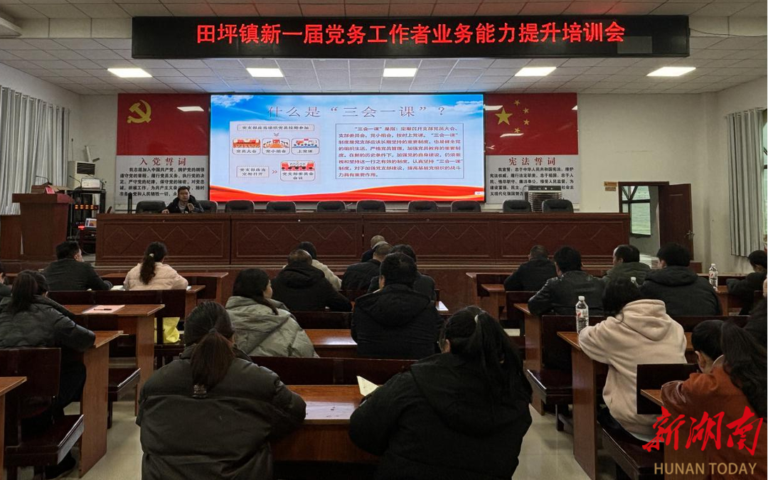 湖南日报·新湖南客户端3月22日讯(通讯员 杨国 章丹 罗滔)3月20日,新化县田坪镇开展新一届党务工作者业务能力提升培训。来自16个村(社区)的新任职党建专干、新当选的党组织书记及网格党支部书记共计40余人参加培训。