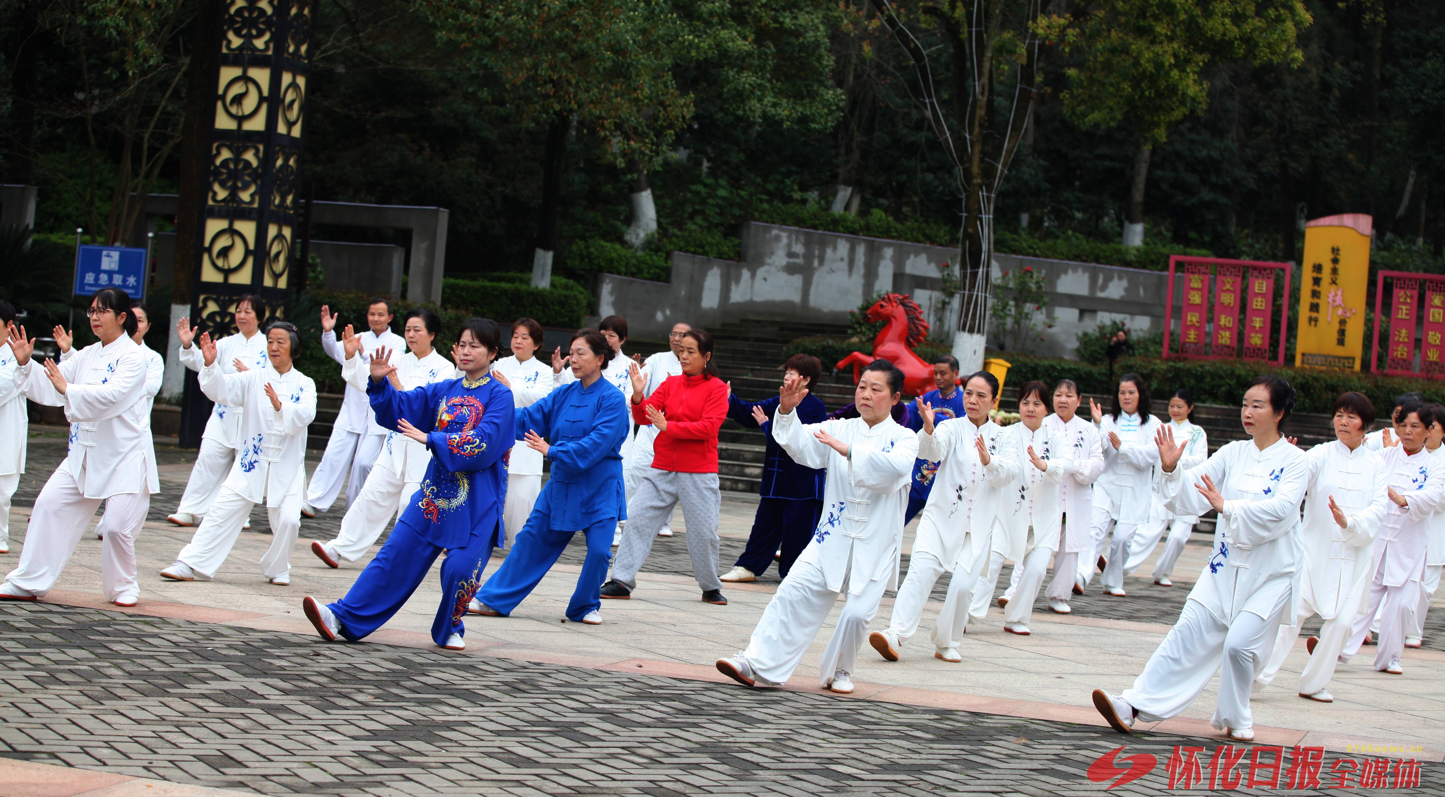 3月21日,是第一个“国际太极拳日”,怀化市太极运动各个团体,在怀化迎丰公园举行太极拳展演活动,纪念这一国际性的健身节日。(刘亚平 摄)