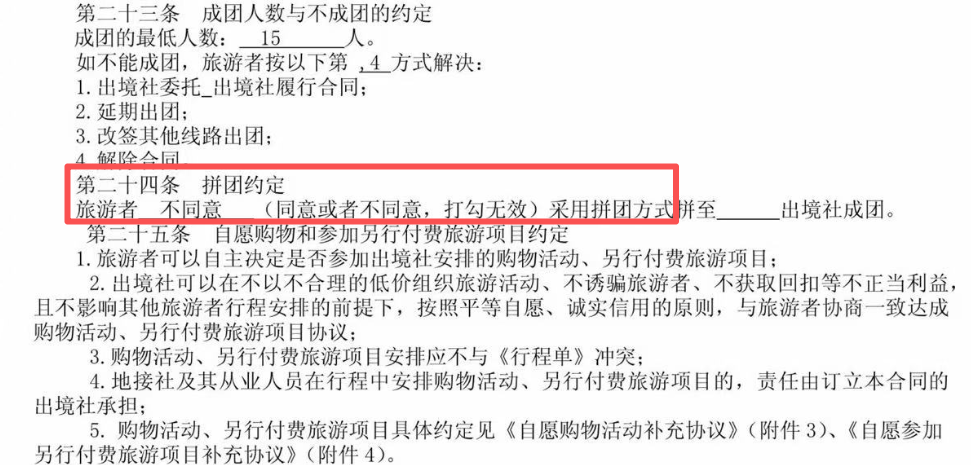 双方签订的合同中明确了旅游者不同意拼团。