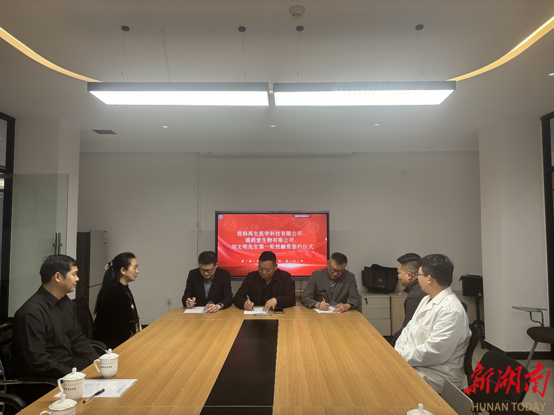 湖南日报·新湖南客户端3月22日讯(通讯员 余力)春和景明,合作启新。为深入贯彻落实国务院第 818 号令《生物医学新技术临床研究和临床转化应用管理条例》,加快细胞治疗领域技术创新与规范化发展,3月22日上午,湖南君科再生医学科技有限公司与湖南瑶药堂生物科技有限公司细胞研发项目首轮投资签约仪式举行,共同推动细胞技术研发与临床转化迈上新台阶。