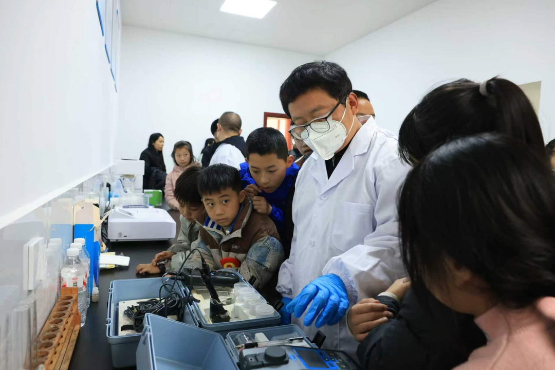 此次探秘之旅,也是一次生动的水知识科普课。在引水桥旁,讲解员为大家揭示了清泉如何通过宏伟的水利工程和精密闸门启程,迈向通往千家万户的旅程。在莲花寨计量站,孩子们见证了如何通过先进设施实时监测输水流量,并了解了利用输水管道富余水压进行“余压发电”的绿色科技,深刻体会到水资源集约利用的科技含量。在水质检测演示环节,株树桥水库水质监测站工作人员现场操作,将专业的氨氮、pH值等指标检测过程直观呈现。检测结果再次验证,水库水质相关指标达到了I类水标准,是名副其实的“优质水”和“放心水”。