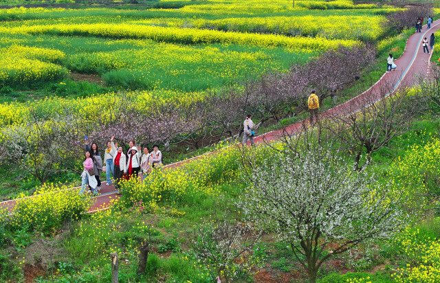 (3月21日,衡山县萱洲镇,游客在踏青赏花。曹正平 李惠蓉 摄影报道 图源湖南图片库)