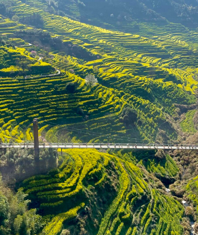 如果想去邂逅春日花海,江西婺源是不二之选。长沙先到南昌,再转车至婺源,全程乘坐高铁时间约3小时,油菜花海正值盛放期,金黄花田与徽派建筑相映成趣,适合摄影、亲子游。