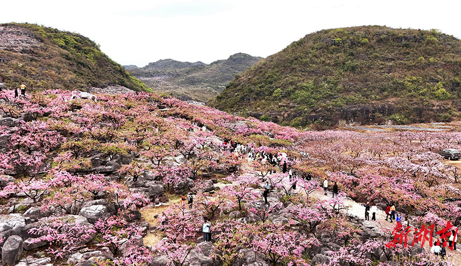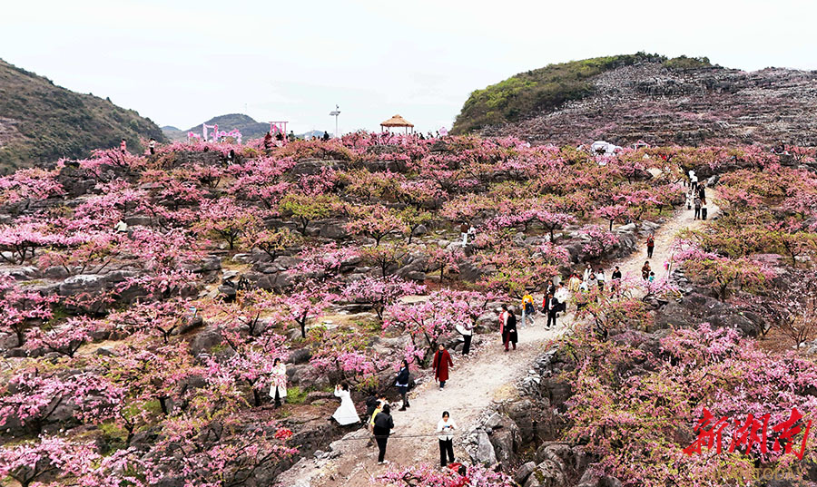 3月21日,江永县第三届桃花节在兰溪瑶族乡香花井村开幕,数千亩桃花绽放,吸引众多游客前来观赏。近年来,当地村民通过石山栽桃发展特色旅游,让“石头山”变身“致富山”。 田如瑞 摄(湖南图片库)