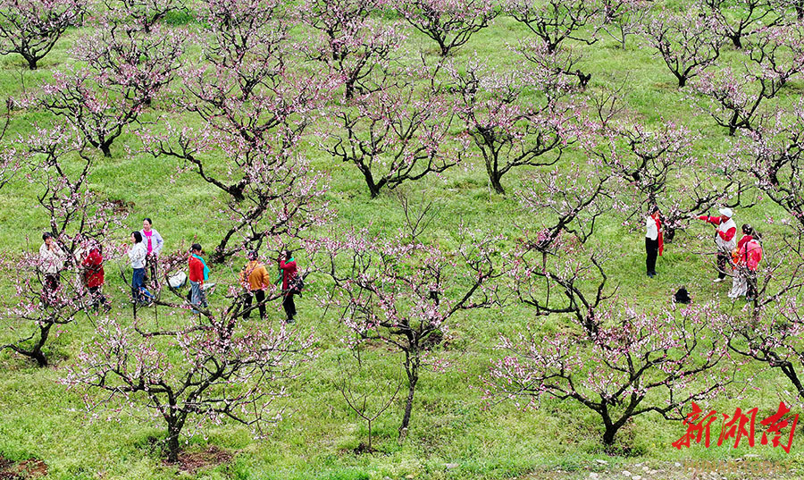 3月22日,道县大坪铺农场,游客在桃花园里游玩。当前,该县乡村里的油菜花、桃花、樱花、梨花等竞相绽放,吸引市民外出踏青赏春。 何红福 摄(湖南图片库)