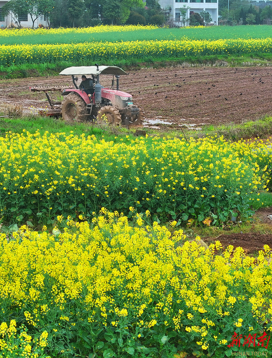 3月22日,衡东县石滩乡,村民驾驶农机在翻耕稻田。春分后气温回升,当地农民抢抓农时开展春耕生产,为全年粮食丰收打好基础。 曹正平 刘嫦 摄影报道(湖南图片库)