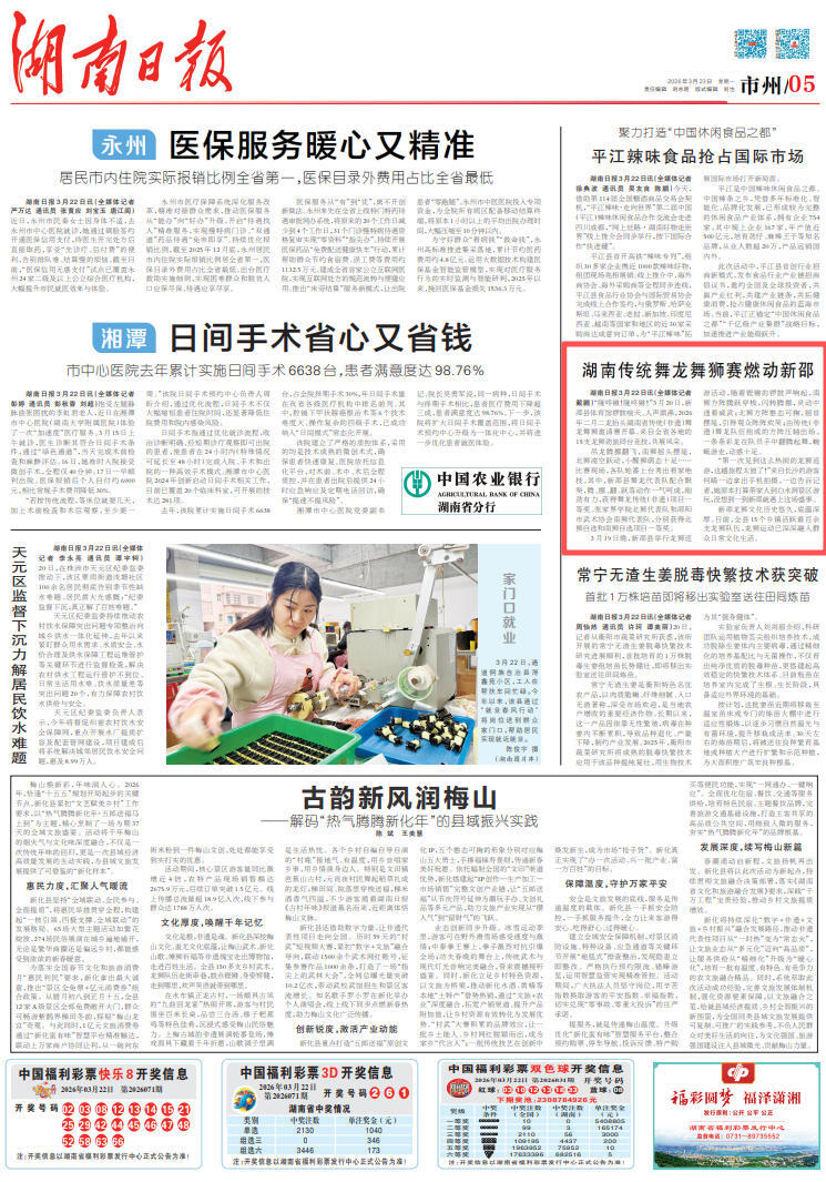 湖南日报3月22日讯(全媒体记者 戴鹏)“隆咚锵!隆咚锵!”3月20日,新邵县体育馆锣鼓喧天、人声鼎沸,2026年二月二龙抬头湖南省传统(非遗)舞龙舞狮邀请赛开幕。来自全省各地的15支龙狮劲旅同台竞技,共展风采。