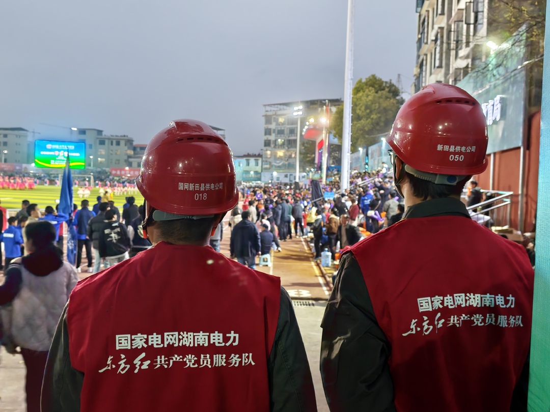 灯光照明、高清大屏、现场音响、电子计分……赛事每一个精彩瞬间的呈现,都离不开稳定可靠的电力供应。面对极高的供电要求,国网新田县供电公司吹响“集结号”,国家电网湖南电力(松风)东方红共产党员服务队挺身而出,以“零故障、零闪动”为目标,为赛事筑起一道坚不可摧的电力防线。