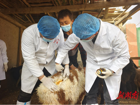 湖南日报·新湖南客户端3月23日讯(记者 陈鸿飞 通讯员 华德超 阳璐 曾炜煜)今天,记者走进祁东县白地市镇的牛羊养殖圈舍,乡镇防疫员熟练地为牲畜接种口蹄疫疫苗,开展圈舍消毒和健康检查指导。