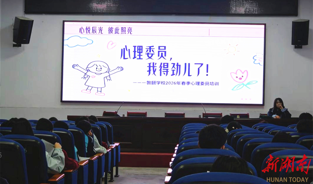 道县敦颐学校开展“心悦辰光,彼此照亮”2026年春季学期心理委员培训,助力心理委员成长为班级“心灵守护者”。心理健康教师胡楠围绕心理委员工作职责、心理健康教育预防机制、心理危机信号识别、焕发朋辈力量等内容,结合校园真实案例,让抽象的理论知识变得具体可感,帮助心理委员们学懂、弄通、会用。