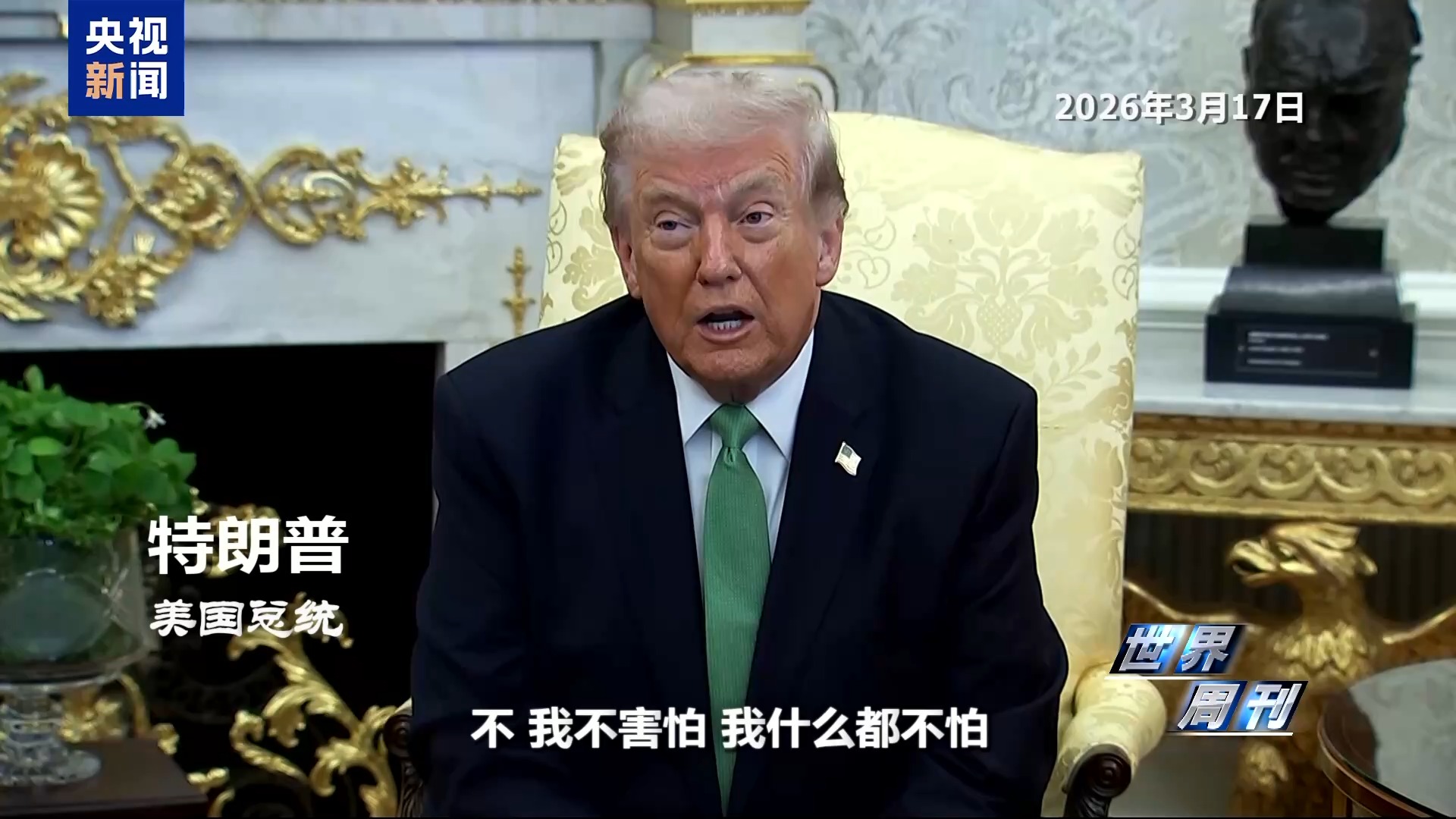 美国总统 特朗普:不,我不害怕,我什么都不怕。