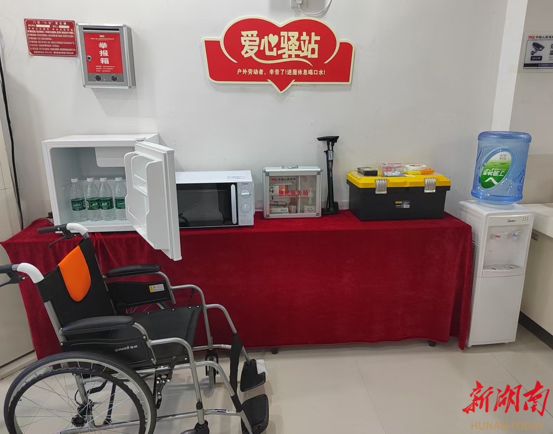此次集中挂牌的5家爱心驿站,经过科学选址,均坐落于人流密集、交通便捷的机构网点,严格遵循标准化建设要求,全方位配齐便民服务设施,休息座椅、免费饮用水、冰箱、微波炉、手机充电设备、应急急救箱等实用物资一应俱全,全方位为户外工作者及有需要的群众提供“渴了能喝水、累了能歇脚、急了能求助”的贴心服务,为常年奔波在一线的劳动者打造遮风挡雨、补充能量的“暖心港湾”。