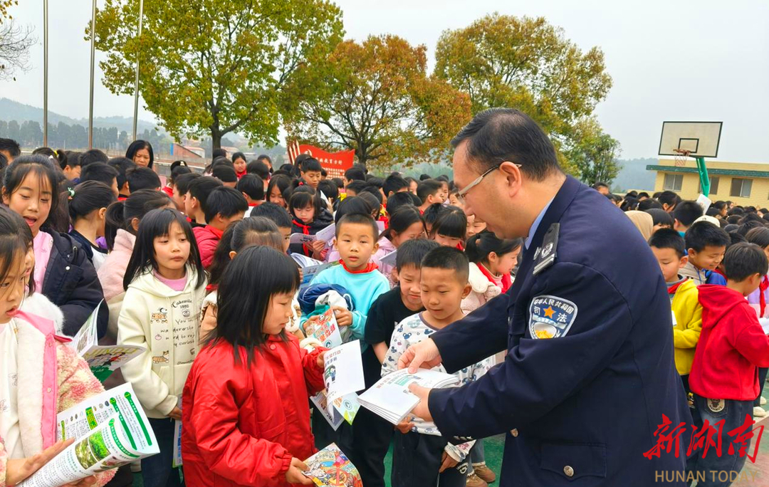 道县梅花镇中心小学联合镇政府、镇司法所,开展法治安全进校园活动。道县梅花司法所所长何军围绕未成年人保护、防性侵、禁毒、防溺水等重点内容,通过案例讲解、互动问答等形式,普及与日常生活息息相关的法律知识,教会学生们识别危险场景、掌握自我保护技巧,学会用法律武器维护自身合法权益。工作人员还向学生们逐一分发禁毒宣传折页、未成年人保护手册等资料,让法治知识看得见、带得走、学得会。学生们认真翻阅、积极提问,让法治的种子在内心扎根。