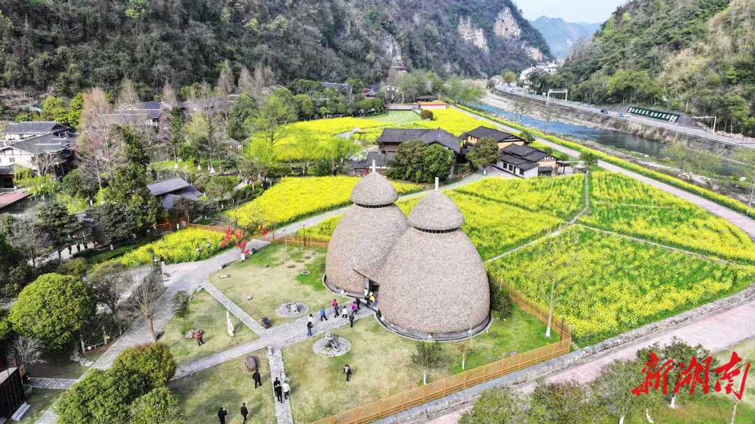 黄龙洞生态广场上,金黄油菜花迎风摇曳,花香四溢,与青山、田园、古树、红灯相映成趣,构成一幅醉人的春日画卷。游客漫步花间,拍照留影,尽情享受田园春光。作为世界自然遗产、世界地质公园张家界唯一的溶洞景观,黄龙洞洞内钟乳石林立、景观奇特,洞外百花盛开、春色烂漫,形成“地下奇观、洞外花海”的独特游览体验,吸引大量韩国、俄罗斯等地入境游客前来观光。