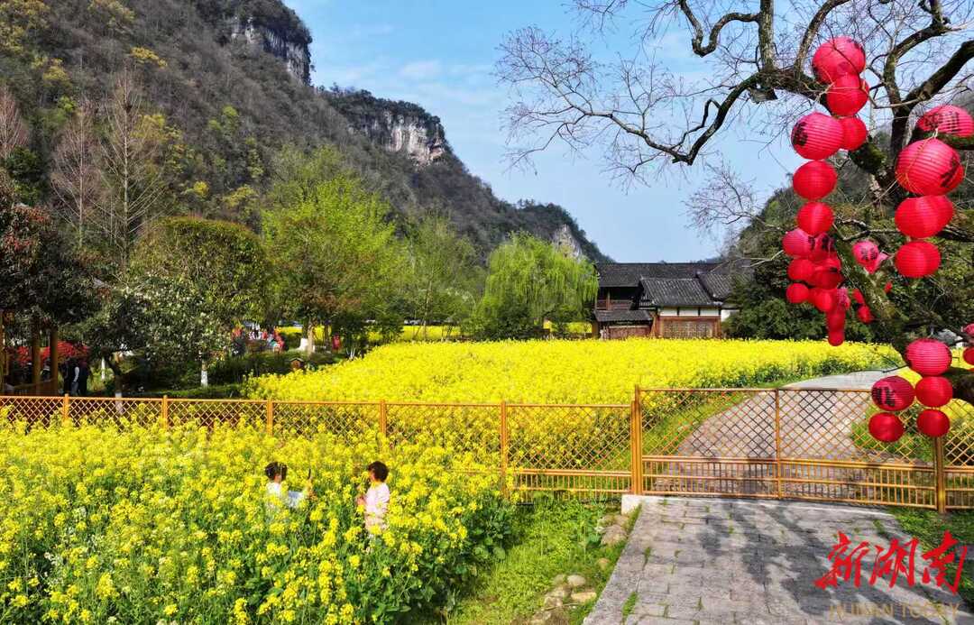湖南日报·新湖南客户端3月23日讯 (记者 田育才 通讯员 邓道理)3月22日,张家界黄龙洞景区春光明媚,油菜花海盛放飘香,中外游客纷至沓来踏春打卡,春日旅游热度持续攀升。