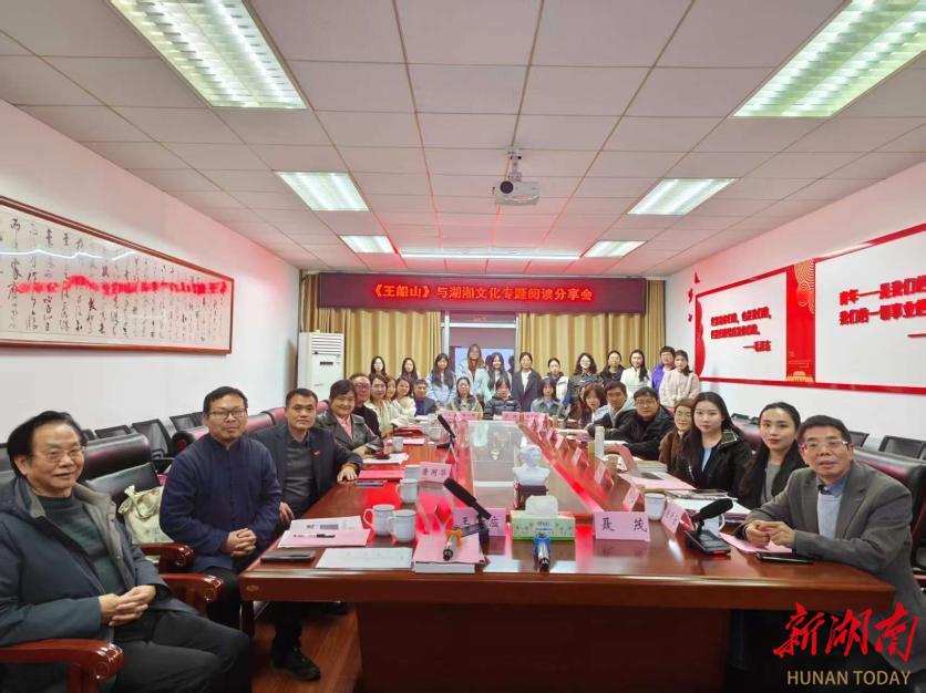 《王船山》与湖湘文化专题读书分享会随后举行。《船山精神永不过时》视频,以生动的影像和深情的讲解回顾王夫之的人生际遇、思想传播历程,为整场读书会营造了浓郁、厚重的文化氛围。硕士研究生毛远影、罗珺,本科生王雪婷、宋嘉欣、王恬瑜、曾语涵等10多位同学分别从不同的角度,分享阅读《天地行人——王夫之传》心得与体会,对湖湘文化的思考与感悟。