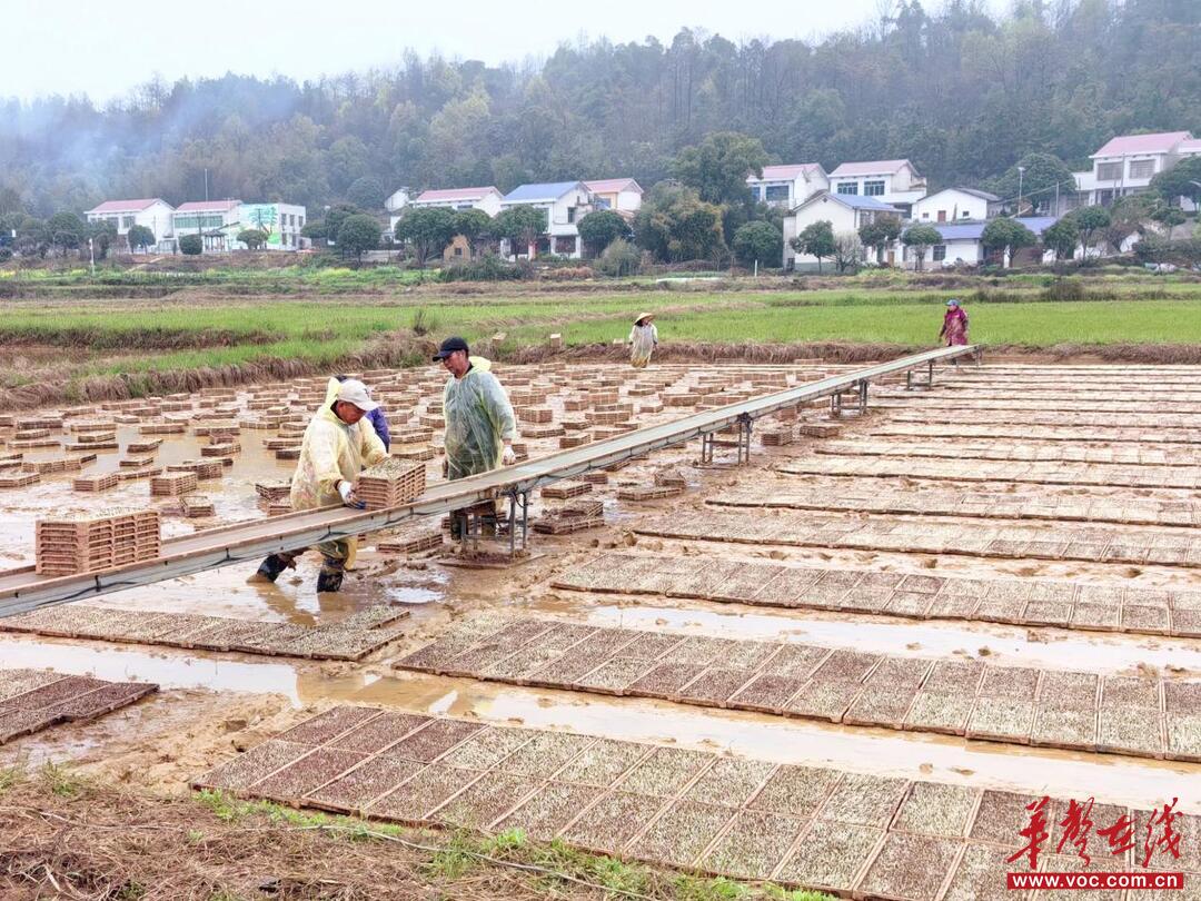 在开慧镇葛家山村的田野上,种粮大户开展集中育秧。开慧镇供图