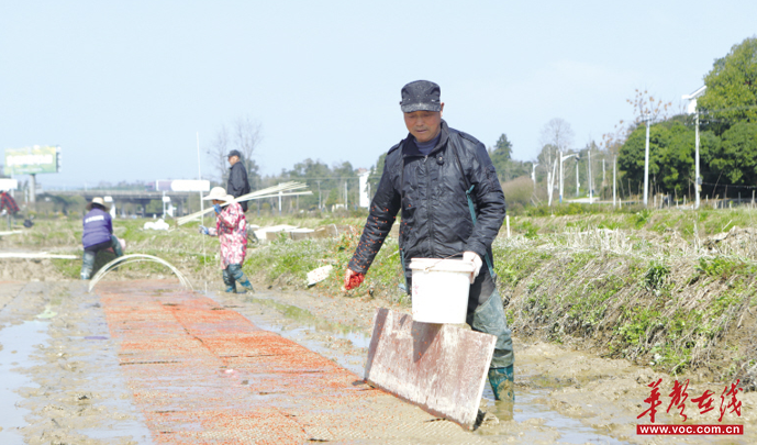 高桥镇振良家庭农场正在组织工作人员铺设机插秧盘为早稻粮食生产打好基础。高桥镇供图