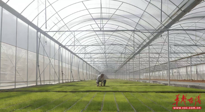 走进开慧镇石燕村,种粮大户向庆伟的集中育秧大棚内铺满育秧盘,一派生机。张庆/摄