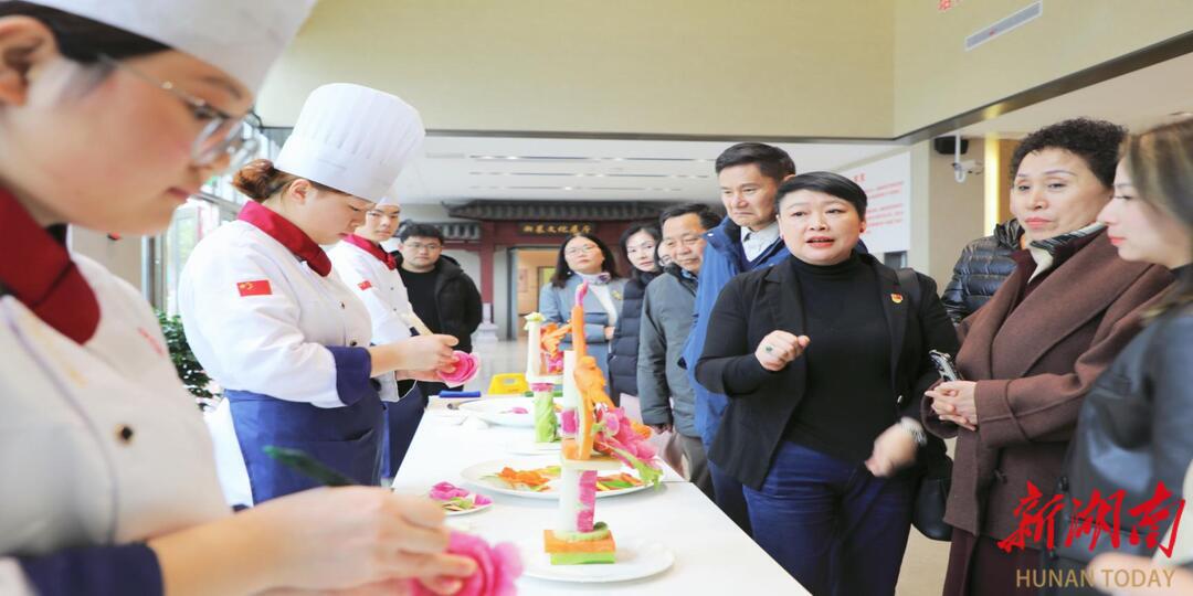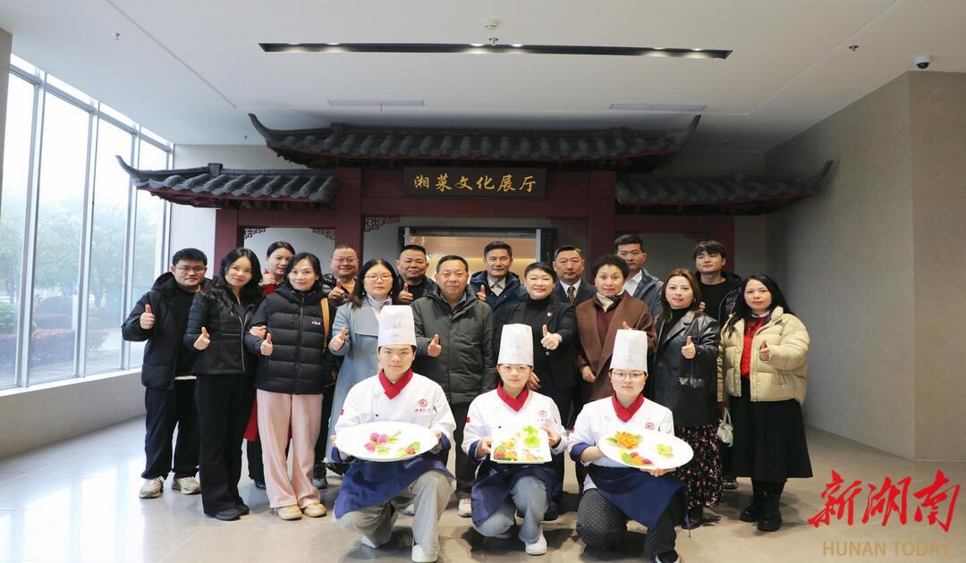 活动中,企业代表一行走进湘菜学院湘菜文化展厅及中西点实训室,沉浸式感受湖湘饮食文化的深厚底蕴。湖南省芙蓉名师、湘菜学院“双带头人”教师党支部书记蒋彦围绕湘菜的历史脉络与时代发展进行细致讲解;省级骨干教师刘文保现场展示烹饪技艺,以精湛刀工与娴熟技法呈现湘菜匠心,赢得企业代表一致赞誉。