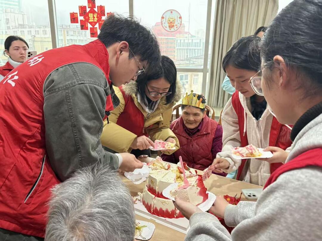 上午九时,生日会在欢快的音乐中拉开帷幕。志愿者们献上歌曲、口风琴表演、民族舞蹈等文艺节目,赢得老人们阵阵掌声。随后,全场齐唱生日歌,志愿者们将蛋糕和礼物逐一送到老人手中。