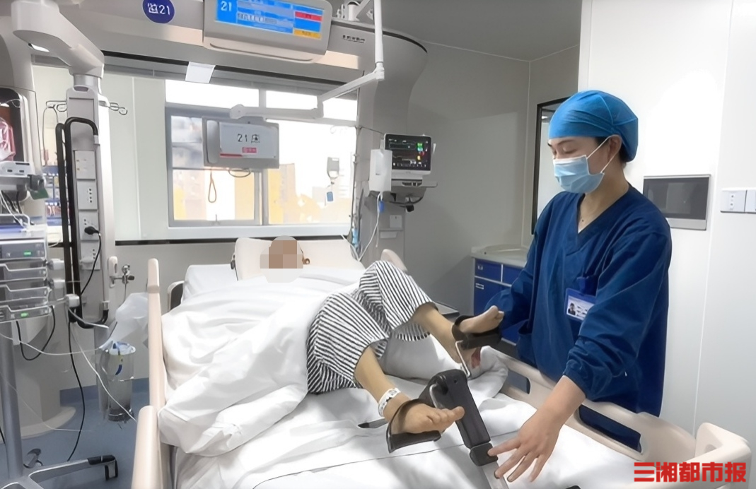 “在传统观念里,ICU患者应以卧床静养为主,但现代重症医学证明,早期康复介入对于预防并发症、缩短病程至关重要。”长沙市中心医院重症医学科护士长梁敏介绍,针对黄云的病情,主管护师、康复治疗师田兰迅速介入,制定个体化方案:从辅助有效咳痰、床上呼吸训练,到坐位呼吸功能锻炼、下床行走训练,康复干预与生命支持同步推进。